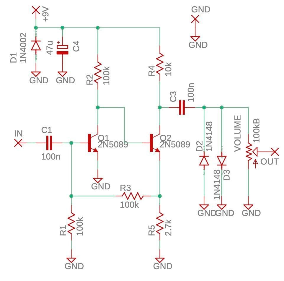 小規模な回路構成ながら、毛羽立った音色が得られるファズらしいファズ。